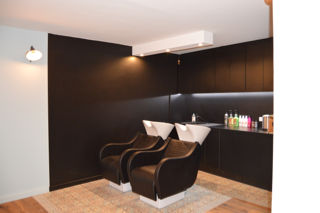 L'agencement de l'espace avec une meilleur circulation à permis la création d'un espace bar et d'un lieu d'attente confortable, la conception de meubles sur mesure répond aux contraintes techniques des coiffeurs en restant fonctionnelle pour les clients, mise en valeur des espaces avec un nouvel éclairage.